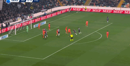 第90+4分钟,布克萨右路突破至禁区兜射远角破门,乌迪内斯3-0佛罗伦萨